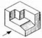 그림과 같은 입체도에서 화살표 방향에서 본 투상을 정면으로 할 때 평면도로 가장 적합한 것은?