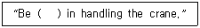 “크레인 취급 시 주의하시오”를 영문으로 표현할 때 ( ) 안에 적합한 것은?
