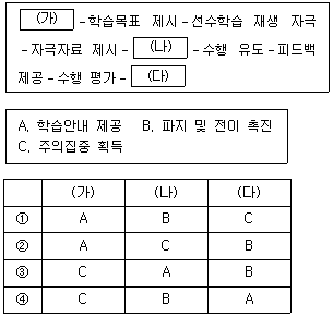 가네(R. Gagnè)의 수업 사태에서 (가)~(다)에 들어갈 단계를 A~C와 바르게 연결한 것은?