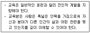 다음 설명에 해당하는 피터스(Peters)가 제시한 교육의 개념적 기준은?