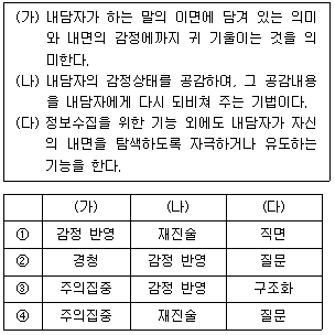 (가)~(다)와 개인상담 기법을 바르게 연결한 것은?
