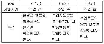 ㉠~㉢에 들어갈 평가 유형을 바르게 연결한 것은? (순서대로 ㉠, ㉡, ㉢)