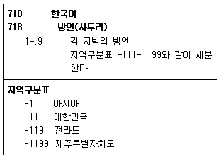 KDC 제6판의 일부를 발췌한 것이다. 이를 적용한 「제주도 방언」의 분류기호는?