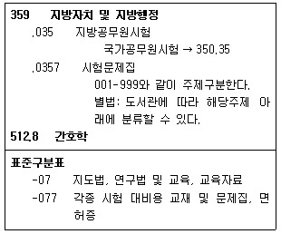 KDC 제6판의 일부를 발췌한 것이다. 이를 적용한 「지방 간호직 시험문제집」의 분류 기호로 옳은 것만을 모두 고르면?