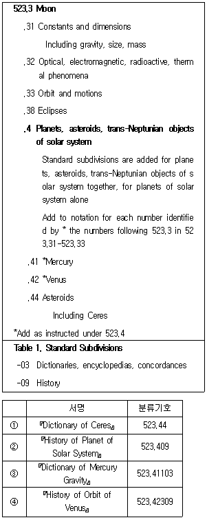 DDC 제23판의 본표와 보조표의 일부를 발췌한 것이다. 이를 적용한 분류기호로 옳지 않은 것은?
