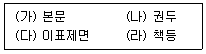 한국목록규칙 제4판의 단행본 기술에 적용되는 정보원의 우선순위를 바르게 나열한 것은?