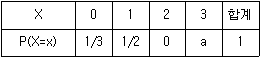 확률변수 X의 확률분포가 다음 표와 같을 때, X의 분산은? (단, a는 상수이다.)