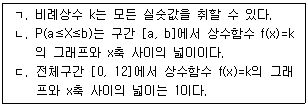 연속확률변수 X는 함숫값을 [0, 12]에서 갖는다. P(a≤X≤b)는 (b-a)에 비례하고, 비례상수를 k라 하자. 이때 옳은 것을 <보기>에서 모두 고른 것은? (단, 0≤a≤b≤12)