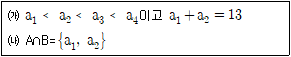 자연수를 원소로 갖는 두 집합 A={a1, a2, a3, a4}, B={√a1, √a2, √a3, √a4}가 <보기>의 조건을 모두 만족시킬 때, a4-a1의 값은?