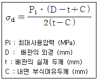 다음은 이송취급소의 배관과 관련하여 내압에 의하여 배관에 생기는 무엇에 관한 수식인가?