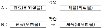 다음 A, B 같은 작업공정을 가진 경우 위험물안전관리법상 허가를 받아야 하는 제조소등의 종류를 옳게 짝지은 것은?