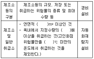 위험물안전관리법령상 제조소등별로 설치하여야 하는 경보설비의 종류 중 자동화재탐지설비에 해당하는 표의 일부이다. ()에 알맞은 수치를 차례대로 나타낸 것은?
