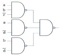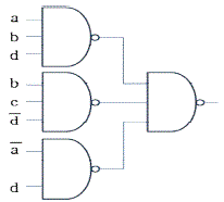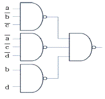 아래에 제시된 K-map(카르노 맵)을 NAND 게이트들로만 구성한 것으로 옳은 것은?