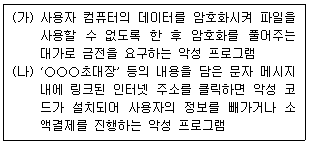 (가), (나)에서 설명하는 악성 프로그램의 용어를 바르게 짝지은 것은? (순서대로 (가), (나))