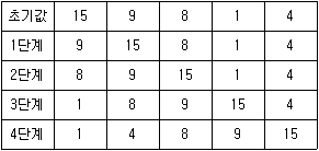 다음 과정을 통해 수행되는 정렬 알고리즘의 특징으로 옳지 않은 것은?