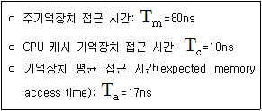 주기억장치와 CPU 캐시 기억장치만으로 구성된 시스템에서 다음과 같이 기억장치 접근 시간이 주어질 때 이 시스템의 캐시 적중률(hit ratio)로 옳은 것은?