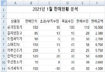 다음 워크시트에서 수식 =VLOOKUP(LARGE(C4:C11,3), C4:F11, 4, 0)에 의해 표시될 수 있는 결과로 옳은 것은?