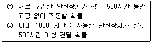 프레스기어의 안전장치 수명은 지수분포를 따르며 평균 수명이 1000시간일 때 ㉠, ㉡에 알맞은 값은 약 얼마인가?