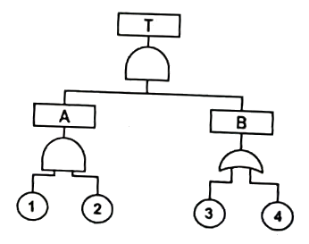 FT도에서 시스템의 신뢰도는 얼마인가? (단, 모든 부품의 발생확률은 0.1 이다.)