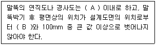 다음은 표준시방서에 따른 기성말뚝 세우기 작업 시 준수사항이다. ( ) 안에 들어갈 내용으로 옳은 것은? (단, 보기항의 D는 말뚝의 바깥지름임)(2021년 5월 12일 개정된 규정 적용됨)