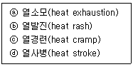 다음 중 열 중독증(heat illness)의 강도를 올바르게 나열한 것은?