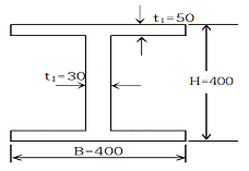 그림과 같이 H-400×400×30×50인 형강재의 길이가 10M일 때 이 형강의 개산 중량으로 가장 가까운 값은?(단, 철의 비중은 7.85ton/m3)