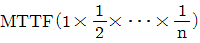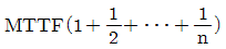 n개의 요소를 가진 병렬 시스템에 있어 요소의 수명(MTTF)이 지수 분포를 따를 경우, 이 시스템의 수명을 구하는 식으로 맞는 것은?