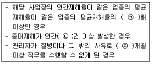 산업안전보건법령에 따른 지방고용노동관서의장의 사업주에게 안전관리자ㆍ보건관리자 또는 안전보건관리담당자를 정수 이상으로 증원하게 되거나 교체하여 임명할 것을 명할 수 있는 기준 중 다음 ()안에 알맞은 것은?(2023년 01월 확인된 규정 적용됨)