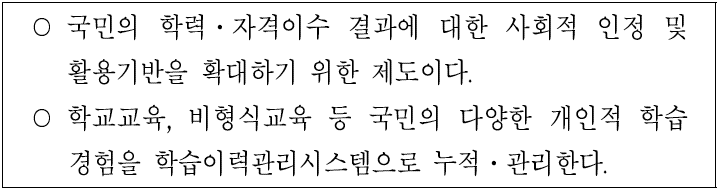 다음에 해당하는 우리나라의 평생교육 제도는?