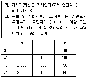 「화재예방, 소방시설 설치・유지 및 안전관리에 관한 법률시행령」 제15조 별표5의 소방시설 중 제연설비를 설치해야 하는 특정소방대상물에 대한 내용이다. ( ) 안에 들어갈 숫자로 옳은 것은?