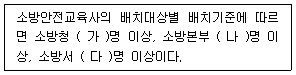 「소방기본법 시행령」상 소방안전교육사의 배치대상별 배치기준에 관한 설명이다. ( ) 안의 내용으로 옳은 것은? (순서대로 (가), (나), (다))