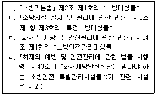 「소방기본법」, 「소방시설 설치 및 관리에 관한 법률」, 「화재의 예방 및 안전관리에 관한 법률」 및 같은 법 시행령상 <보기>의 'ㄱ~ㄹ'의 관계를 벤다이어그램으로 옳게 표현한 것은?
