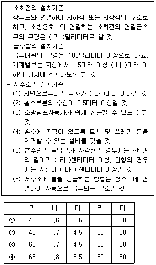 다음은 「소방기본법」 및 같은 법 시행규칙상 소방용수시설의 설치기준에 관한 설명이다. '가~마'에 들어갈 내용으로 옳은 것은?