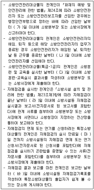 「화재의 예방 및 안전관리에 관한 법률」 및 같은 법 시행규칙과 「소방시설 설치 및 관리에 관한 법률 시행규칙」상 <보기>의 '가~바'에 들어갈 수의 합으로 옳은 것은?