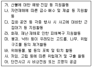 「소방기본법」상 규정하는 소방지원활동과 생활안전활동을 옳게 연결한 것은?(순서대로 소방지원활동, 생활안전활동)