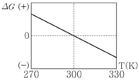 일정한 압력에서 일어나는 어느 반응에 대해 온도에 따른 Gibbs 자유에너지 변화(△G)는 다음과 같다. 이 그림에 대한 설명으로 옳지 않은 것은?