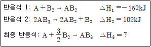 다음 2개의 반응식을 이용해 최종 반응식의 반응 엔탈피(△H3)를 구하면?