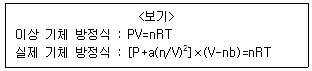 <보기>에 제시된 이상 기체 및 실제 기체에 대한 방정식을 설명한 것으로 가장 옳지 않은 것은?