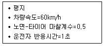 다음의 조건하에서 필요한 차량 정지 거리는?