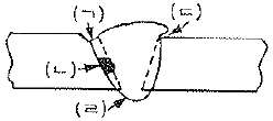 다음 그림과 같은 수평자세 V형 홈이음 용접에 있어서 언더컷은 어느 부분을 말하는가?