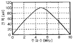 주파수에 대한 응답곡선이 그림과 같을 때 탐촉자의 밴드폭(band width)은 약 얼마인가?