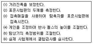 A-스캔 초음파 탐상기를 사용하여 결함을 탐상하는 경우 다음 내용을 올바른 순서로 나열한 것은?