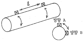그림과 같은 주강품의 검사시 탐상방향(방향A, 방향B)에 관계없이 제품 중앙에서 방생된 유사한 높이의 결함 에코가 일정길이(ℓ)만큼 존재하는 것을 알았다. 어떤 결함으로 추정되는가?