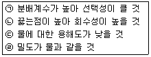폐기물의 물리화학적 처리방법 중 용매추출에 사용되는 용매의 선택기준이 옳은 것만 모두 나열된 것은?