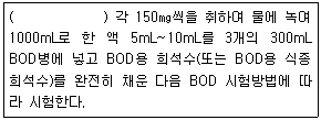다음은 BOD용 희석수(또는 BOD용 식종 희석수)를 검토하기 위한 시험방법이다. ( ) 안에 알맞은 것은?