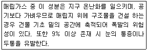 다음은 매립가스 중 어떤 성분에 관한 설명인가?