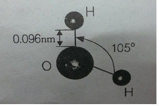 아래 그림은 물분자의 구조이다. 이와 관련된 설명으로 옳지 않은 것은?