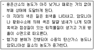 하천이 유기물로 오염되었을 경우 자정과정을 오염원으로 부터 하천 유하거리에 따라 분해지대, 활발한 분해지대, 회복지대, 정수지대의 4단계로 구분한다. <보기>와 같은 특성을 나타내는 단계는?