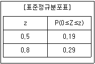 어느 자격시험에 응시한 사람들의 점수는 평균 620점, 표준편차 50점인 정규분포를 따르고, 이 시험에 합격하기 위해서는 660점 이상의 점수를 얻어야 한다고 한다. 이 시험에 응시한 사람이 660점 이상의 점수를 받을 확률은? (단, 아래 표준정규분포표를 이용한다.)