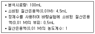 먹는물수질공정시험기준상 염소이온을 질산은적정법으로 측정한 결과가 다음과 같을 때 염소이온 농도(mg/L)는?